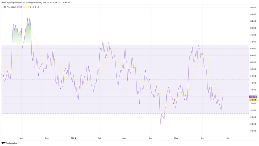 När RSI-avläsningen är 30 eller lägre betyder det att en tillgång är översåld. Avläsningar vid 70 eller högre indikerar överköpta förhållanden. I skrivande stund ligger RSI på 39,63, vilket tyder på att den potentiella ökningen till $15 ännu inte har validerats.