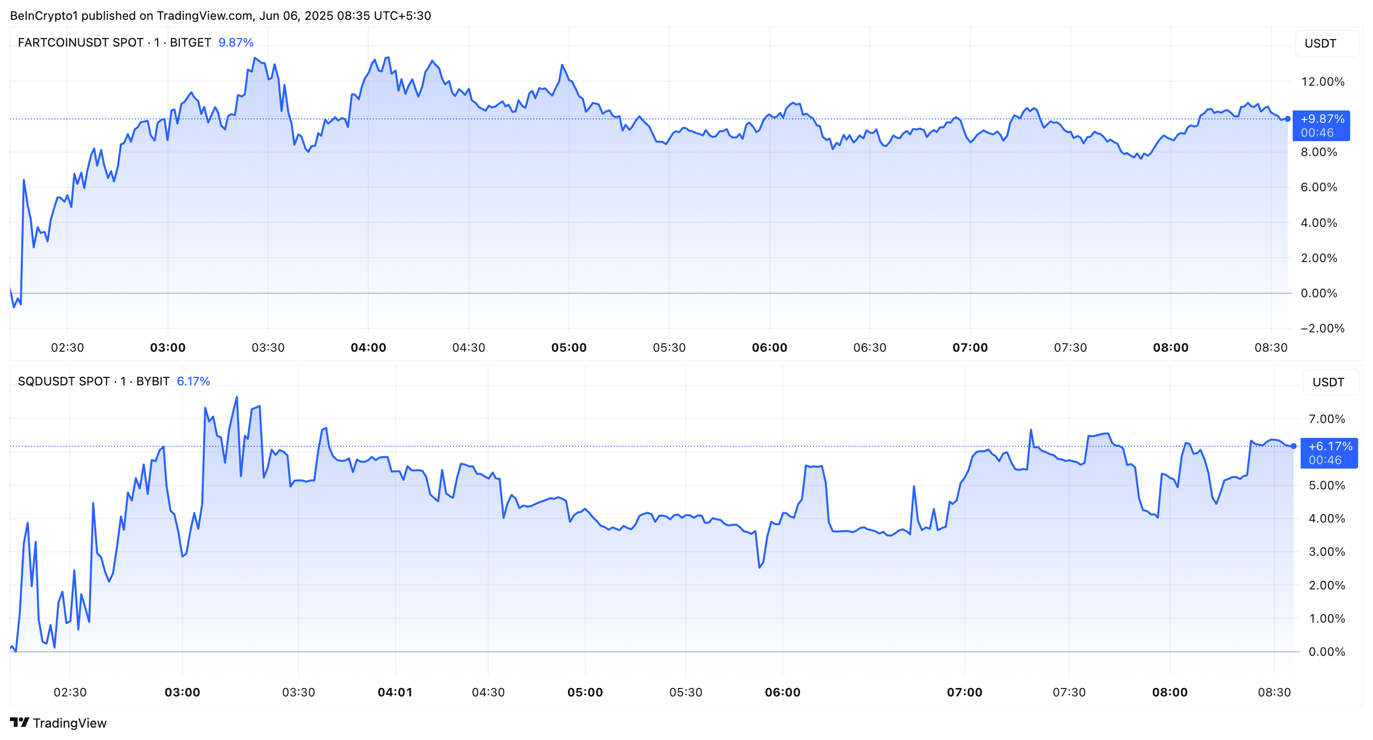 “Solana-nätverkets (SPL token) kontraktsadress för Fartcoin (FARTCOIN) är 9BB6NFEcjBCtnNLFko2FqVQBq8HHM13kCyYcdQbgpump. Arbitrum-kontraktsadressen för Subsquid (SQD) är 0x1337420dED5ADb9980CFc35f8f2B054ea86f8aB1,” skrev Coinbase på sin sida.