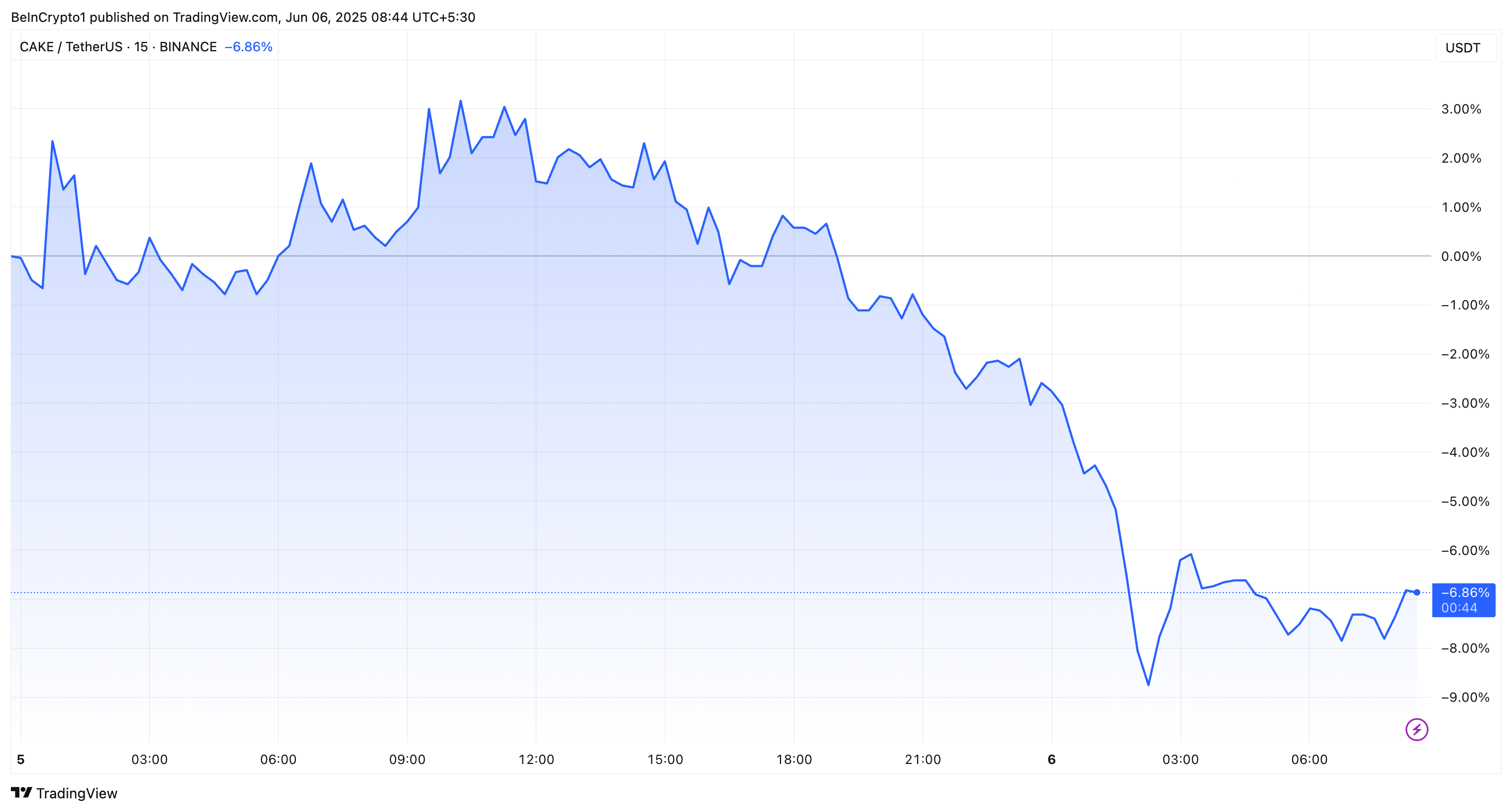 Denna utveckling följer Coinbases senaste inkludering av PancakeSwap (CAKE), den inhemska tokenen för BNB Chains största decentraliserade börs (DEX). CAKE steg initialt med 5,8% efter nyheten men har sedan dess sjunkit. Enligt de senaste uppgifterna handlades den till 2,2 USD, vilket motsvarar en nedgång på 6,8%.