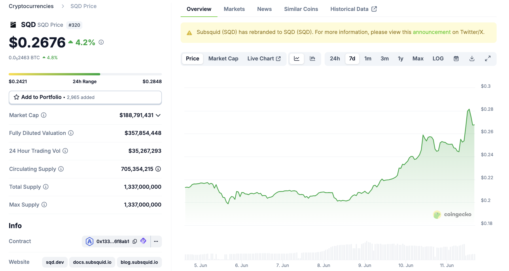Subsquid, å andra sidan, fick en mer betydande skjuts. SQD-tokenen lanserades för över ett år sedan och syftar till att driva Subsquids öppna databasenätverk för AI-agenter.