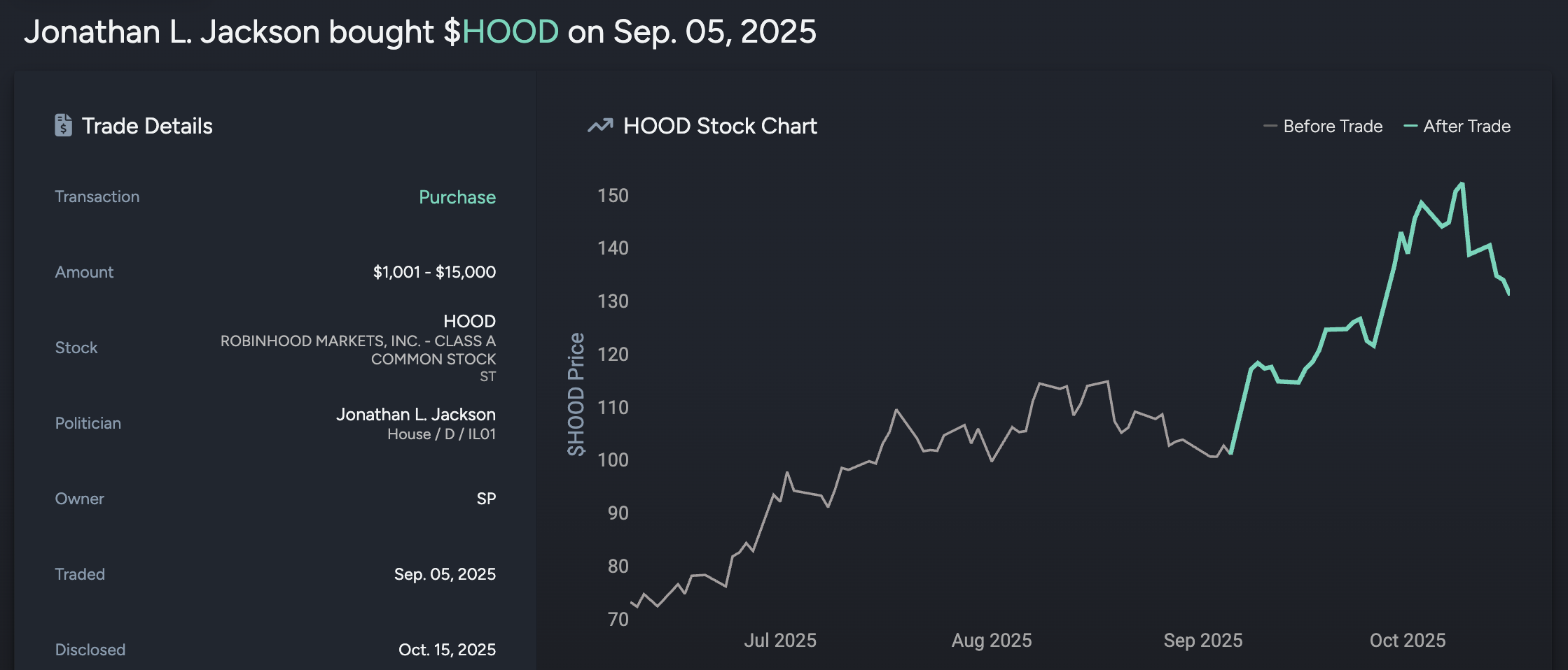 Jonathan Jackson, medlem av kongressens underkommitté för digitala tillgångar, har nyligen investerat i Robinhood. Trots en mindre korrigering har hans investering ökat med nästan 30 % sedan köpet.
