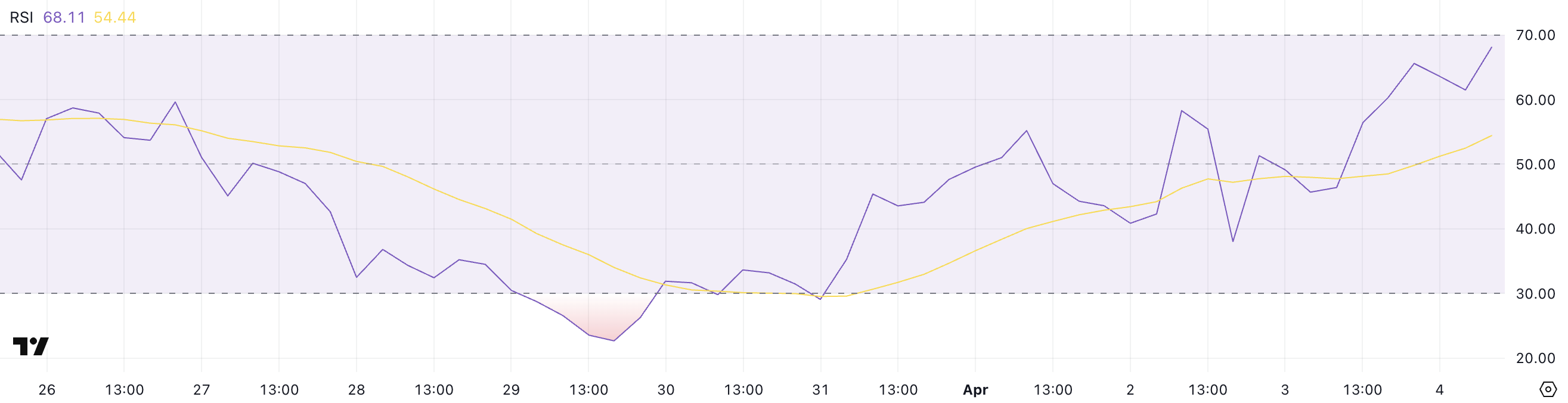 Medan ett genombrott över 70 kan signalera en stark fortsatt uppgång, kommer sådana höga RSI-nivåer också med försiktighet, eftersom handlare kan börja ta vinster eller omvärdera ingångspunkter.