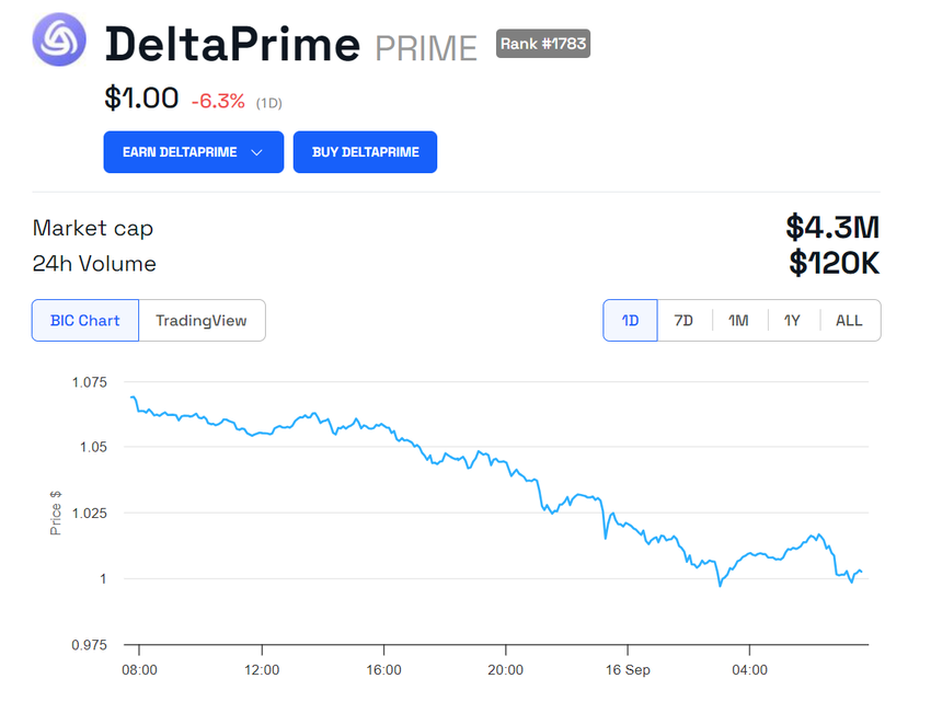 Vid tidpunkten för denna skrivning har DeltaPrimes team ännu inte utfärdat något officiellt uttalande. Attacken har också haft en betydande inverkan på plattformens inhemska token, PRIME. Under de senaste 24 timmarna har den minskat med 6,3% i värde och handlas nu till 1 USD.