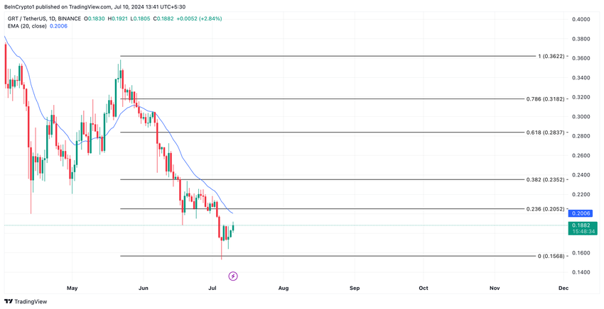 Den stadiga nedgången i GRT:s pris har pressat det under sitt 20-dagars exponentiella glidande medelvärde (EMA). En tillgångs 20-dagars EMA mäter dess genomsnittliga pris under de senaste 20 handelsdagarna.