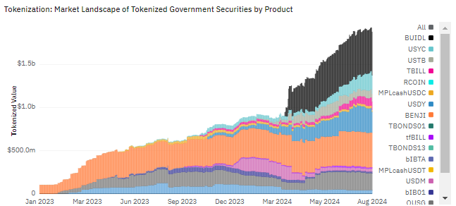 Vid sidan av stablecoins upplever tokeniserade verkliga tillgångar betydande tillväxt, och lockar institutionellt intresse. Stora aktörer som BlackRock, Grayscale och Franklin Templeton gör stora framsteg inom detta område. Marknaden för tokeniserade värdepapper har överstigit 1,92 miljarder USD, vilket understryker RWAs roll i att överbrygga klyftan mellan TradFi och DeFi.