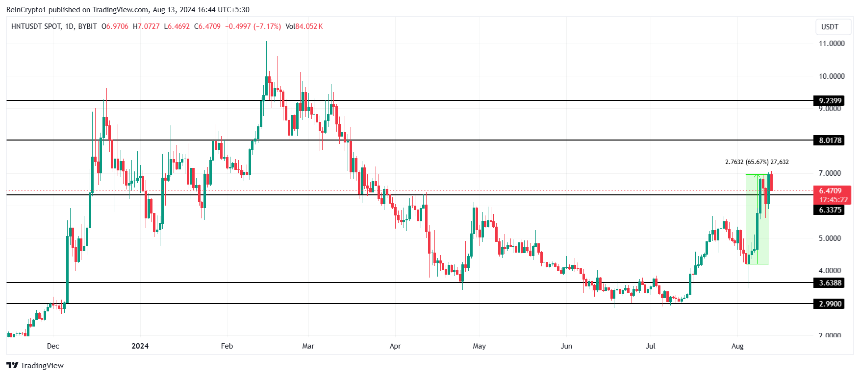 Detta mer än fördubblade den öppna räntan, vilket återspeglar ett växande förtroende och deltagande från investerare. Om detta momentum håller i sig kan HNT:s hausseartade trend fortsätta.