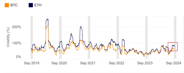 Enligt rapporten ser september ut att bli mycket volatil, med Bitcoins 30-dagars historiska volatilitet som stiger till 70%. Detta mått mäter fluktuationen i ett tillgångspris under de senaste 30 dagarna, vilket återspeglar hur dramatiskt dess pris har rört sig under den perioden.