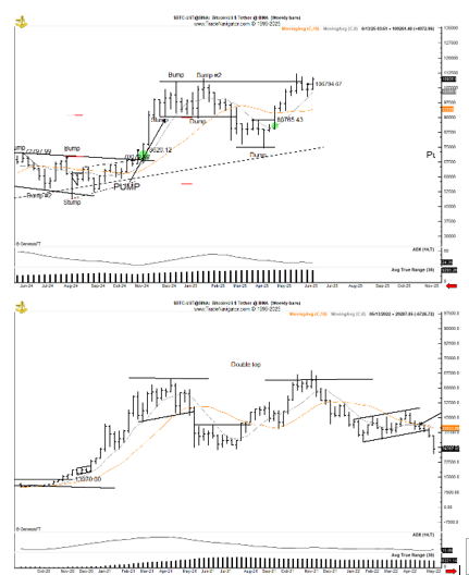Brandts observationer tyder på att finansmarknader ofta upprepar beteendemönster. Den nuvarande diagramstrukturen liknar starkt den uppställning som föregick den tidigare kraschen.