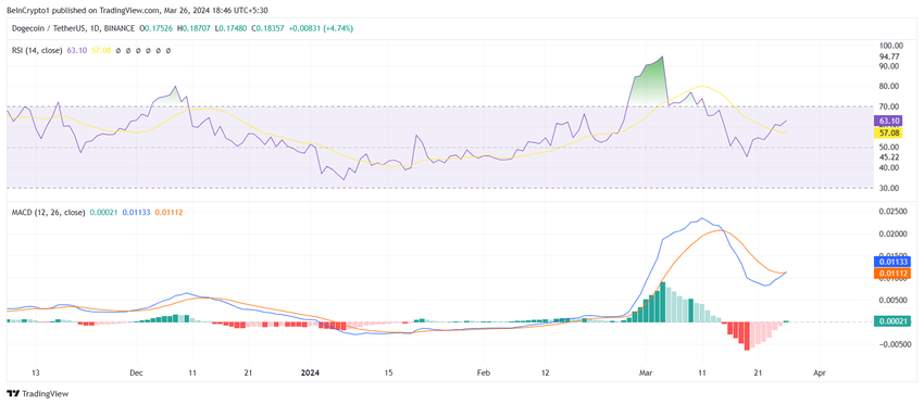 När Dogecoin-priset tog sig upp på diagrammet lämnade det bakom sig ett rally som var tillräckligt stort för att återhämta de förluster som investerare bevittnade under mitten av mars. Ökningen med 42% täckte upp kraschen på 26% och förde DOGE närmare att nå $ 0.20.
