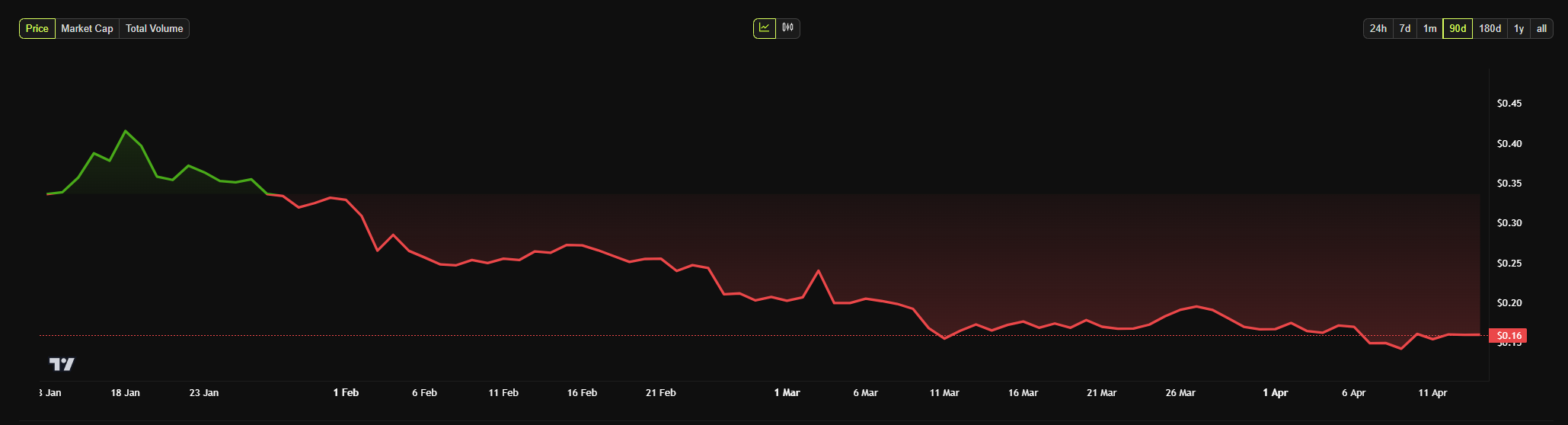 Ändå, sedan den officiella etableringen av Department of Government Efficiency, har DOGE:s pris fallit fritt. Medan det värderades till 0,36 USD den 20 januari, har priset sedan dess fallit till 0,15 USD idag.