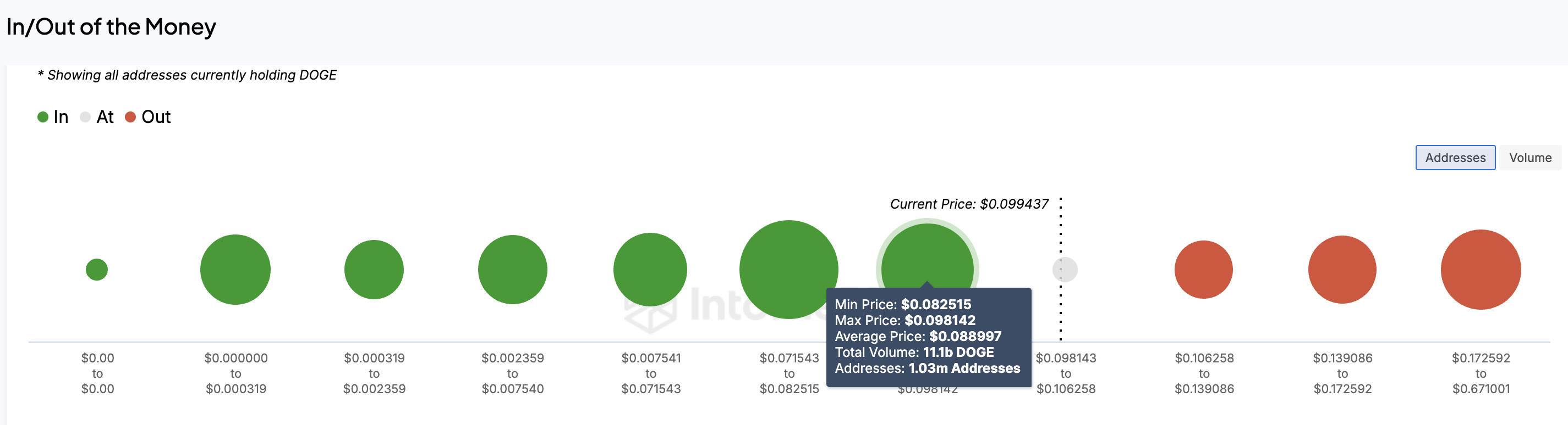 För närvarande har över 1 miljon adresser köpt 11 miljarder DOGE till ett maximalt pris på 0,098 USD.