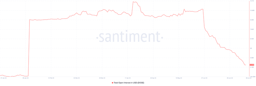 Med 2,51 miljarder dollar i skrivande stund har meme-myntets totala öppna intresse sjunkit till sin lägsta nivå sedan början av året.