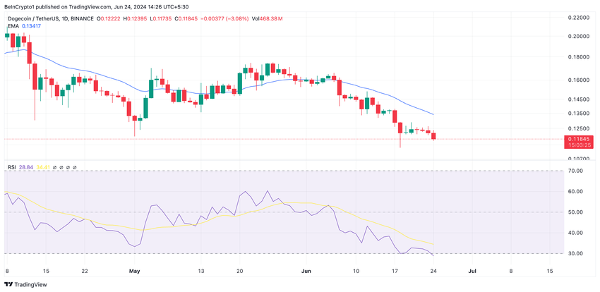 Avläsningar från DOGE:s Relative Strength Index (RSI) ger dock en viss respit. Vid presstillfället är DOGE:s RSI 29,41.