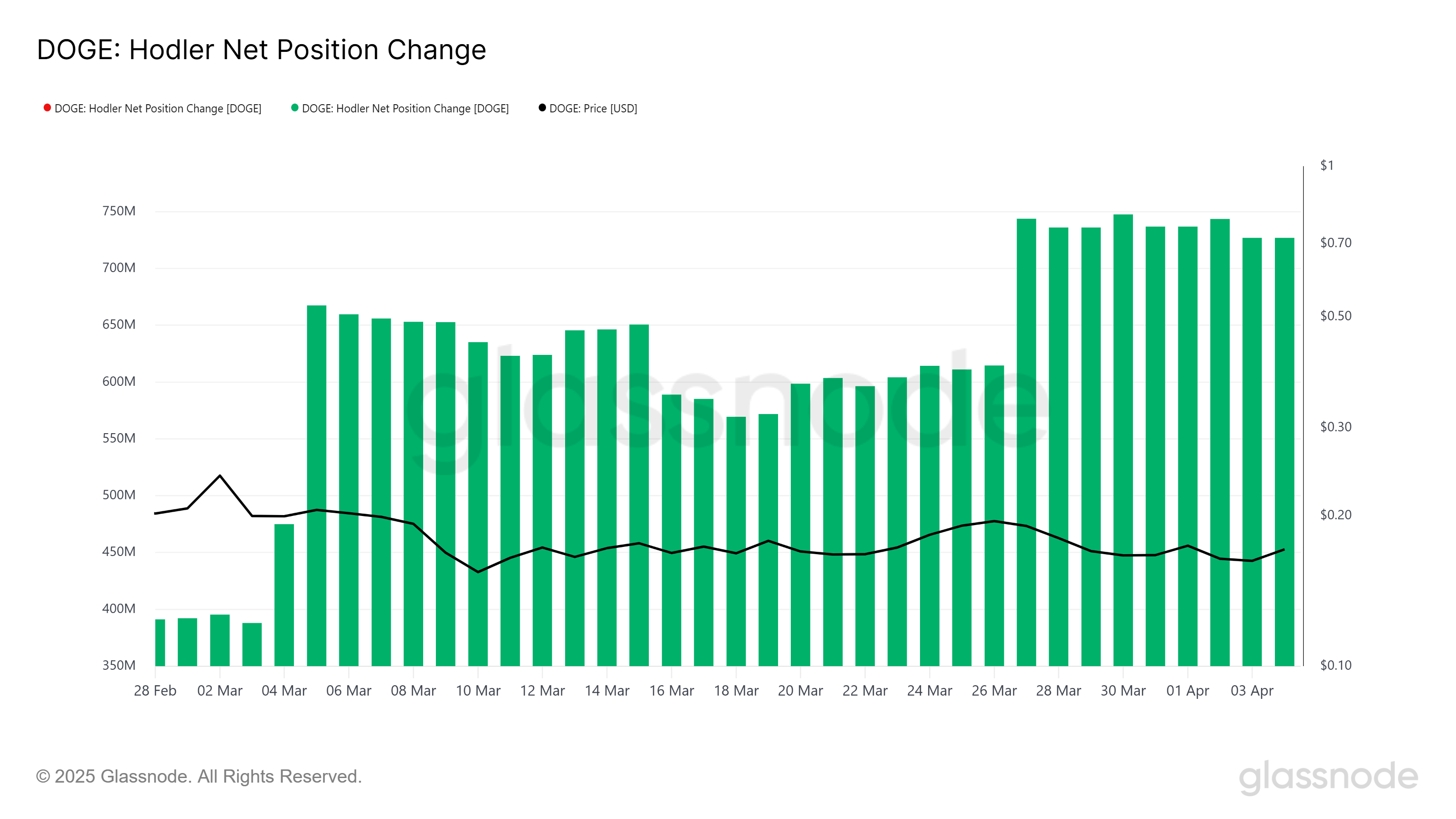 HODLer nettopositionsförändring visar ett ökande antal LTHs som är säkra på en framtida prisåterhämtning. Eftersom DOGE är relativt billigt ser dessa investerare de nuvarande förhållandena som en potentiell möjlighet för framtida vinster.
