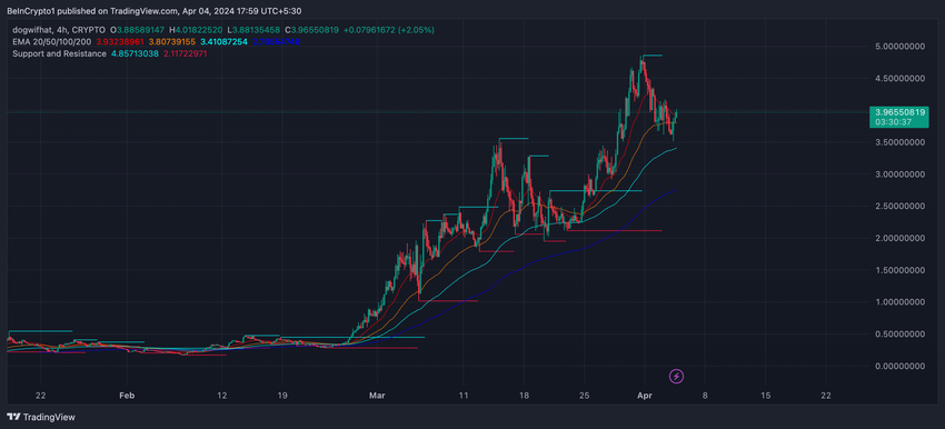 Om upptrenden fortsätter kan Dogwifhat överträffa sin heltidshöjd på $ 4.82 och sikta mot $ 5-märket, sätta nya rekord och understryka det starka hausseartade sentimentet på marknaden.