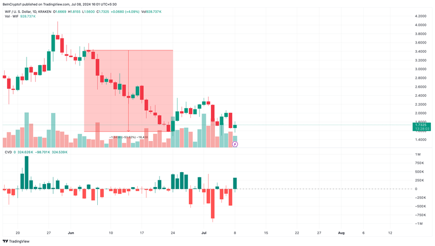 Om tjurarna fortsätter med denna dominans kan WIF motstå att handlas under $1,70 igen. Istället kan priset på meme-myntet se ett högre värde.