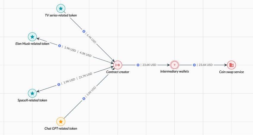 Ett annat utbrett brott som underlättas av AI är skapandet av blufftokens. På många blockkedjor är det relativt enkelt att skapa en ny token, vilket bedragare utnyttjar för att skapa hype och artificiellt blåsa upp priserna innan de genomför en “rug-pull ” eller ett “pump-and-dump”-schema.