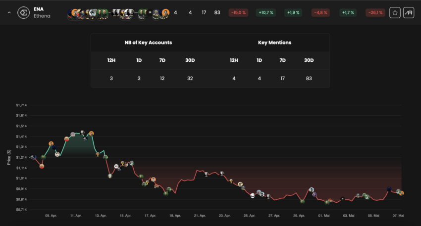 Anmärkningsvärt är att tre unika viktiga opinionsledare (KOL) återigen har lyft fram ENA under de senaste 12 timmarna, vilket ökar det kortsiktiga hausseartade sentimentet.