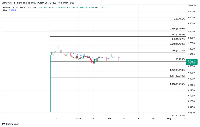 I skrivande stund handlas ENA för $0,72. Under de tidiga handelstimmarna idag sjönk altcoin-priset till 0,68 dollar, den lägsta nivån sedan den 20 maj.