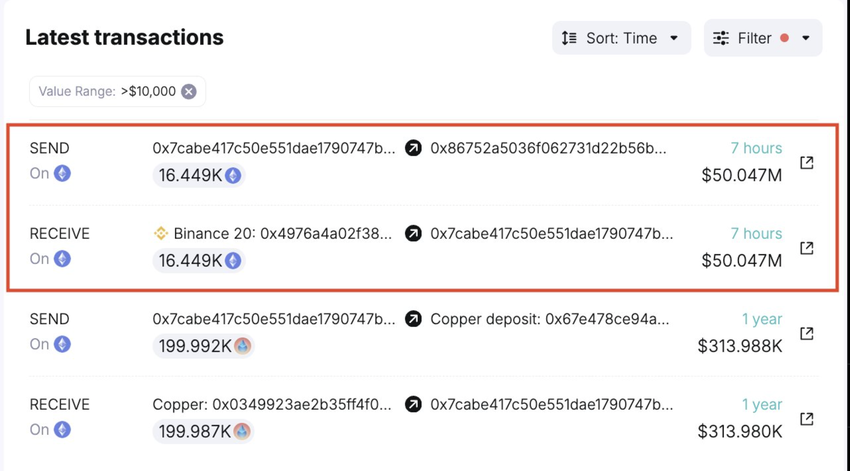 Spot On Chain avslöjade dock tidigt på morgonen den 10 juli att en val hade tagit ut ETH till ett värde av 50,30 miljoner dollar. On-chain-dataleverantören noterar att detta är den första betydande ackumuleringen sedan spekulationerna kring effekterna av Ethereum ETH började.