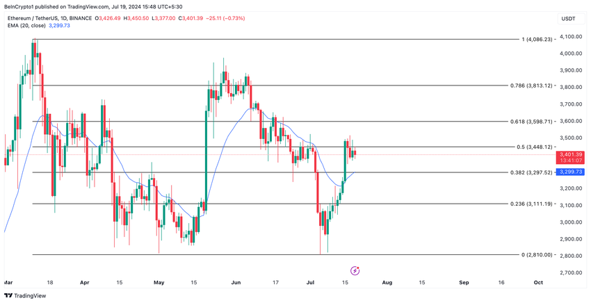 Vid skrivtillfället handlas ETH för $3 392. Priset har stigit med över 10% under de senaste sju dagarna, och myntet verkar redo att utöka sina vinster.