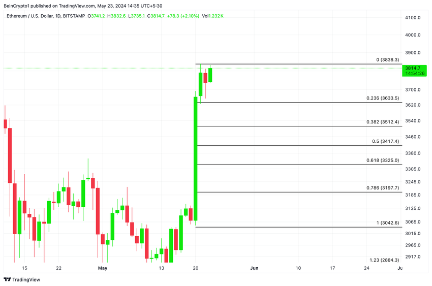 Om inflödet av “nya pengar” till ETH-marknaden fortsätter att stiga, kan myntet lämna $ 3790-nivån bakom sig för att handla till $ 3838.