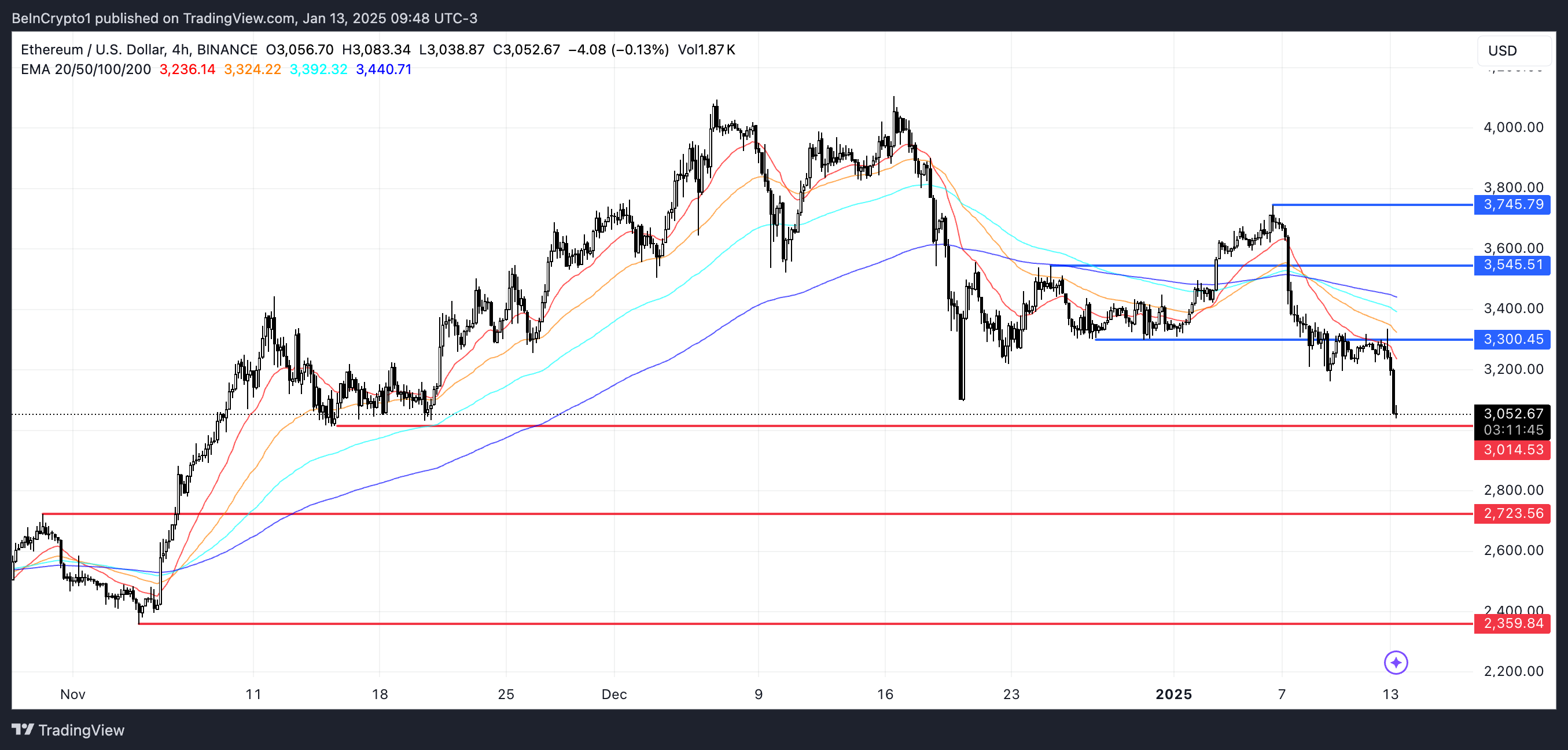 Om det negativa momentumet fortsätter kan Ethereum-priset testa den kritiska stödnivån vid 3 014 USD. Att förlora denna nivå kan pressa ETH under 3 000 USD för första gången sedan november 2024, med efterföljande stöd vid 2 723 USD och 2 359 USD, där den senare representerar en potentiell 23 % korrigering.