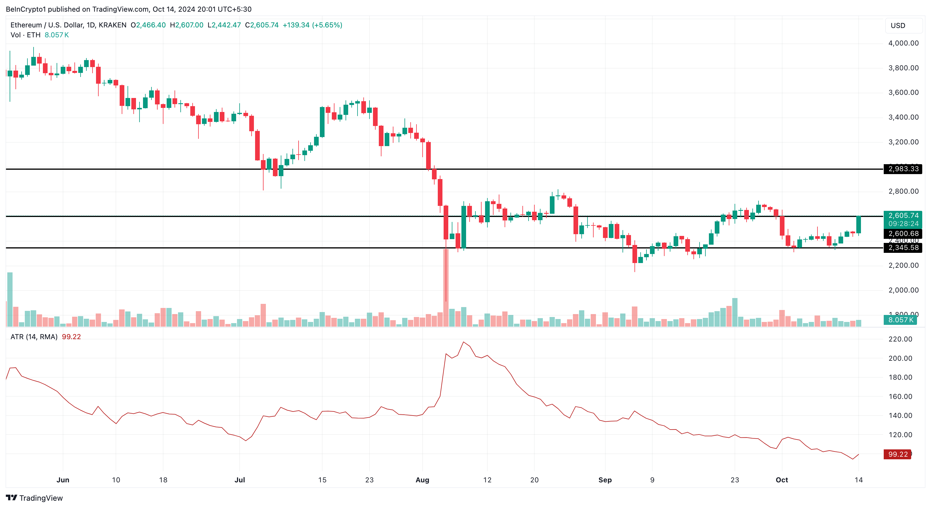 Ethereums pris kan klättra om tjurarna ser till att björnarna inte styr spelet. I det fallet kan kryptovalutans värde öka betydligt mer än till 2 600 USD, möjligen upp till 2 983 USD.
