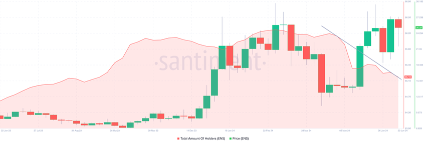 Bortsett från detta gör mönstret som visas av det totala innehavarbeloppet att ENS riskerar att falla under $24. Enligt Santiment har antalet innehavare minskat från 66 300 den 18 april till 65 100 i skrivande stund.