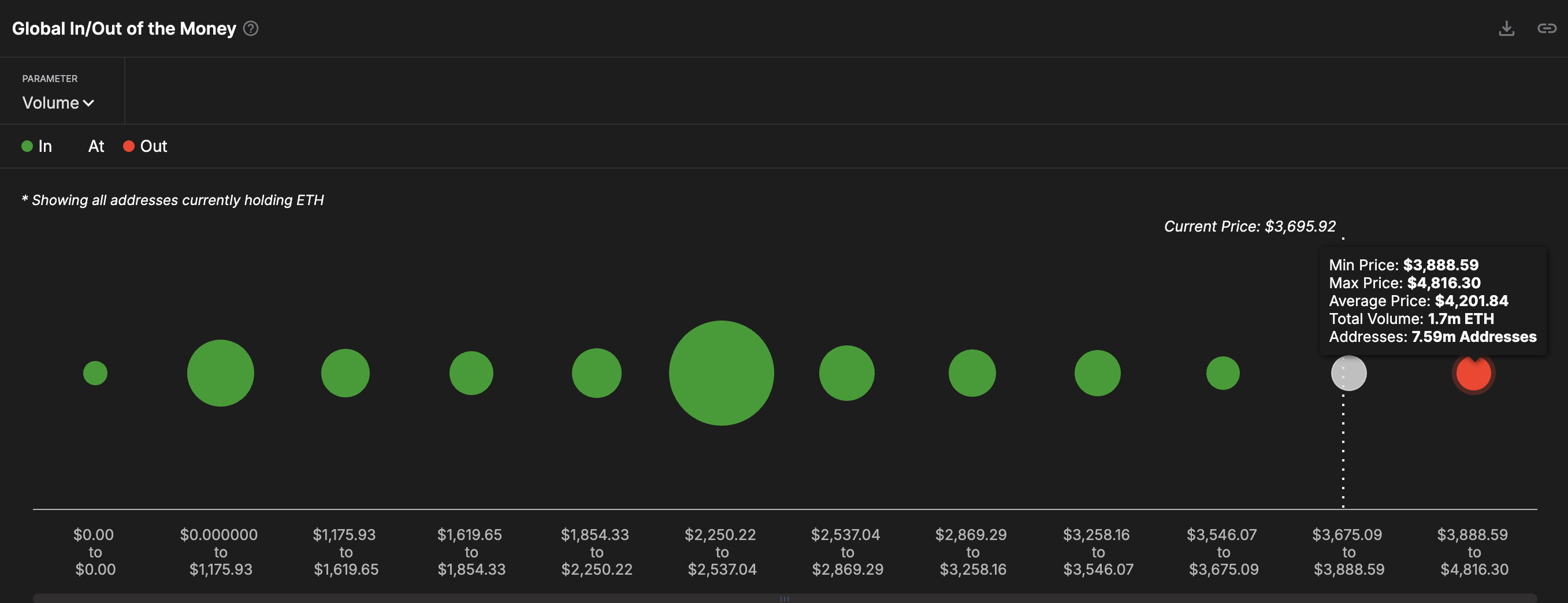 Det finns en innehavarkluster över 3 888 USD, som också behöver brytas. Den klustern förklarar troligen varför snabba rörelser över 3 800 USD avtar; många plånböcker är nära break-even där och säljer vid styrka.