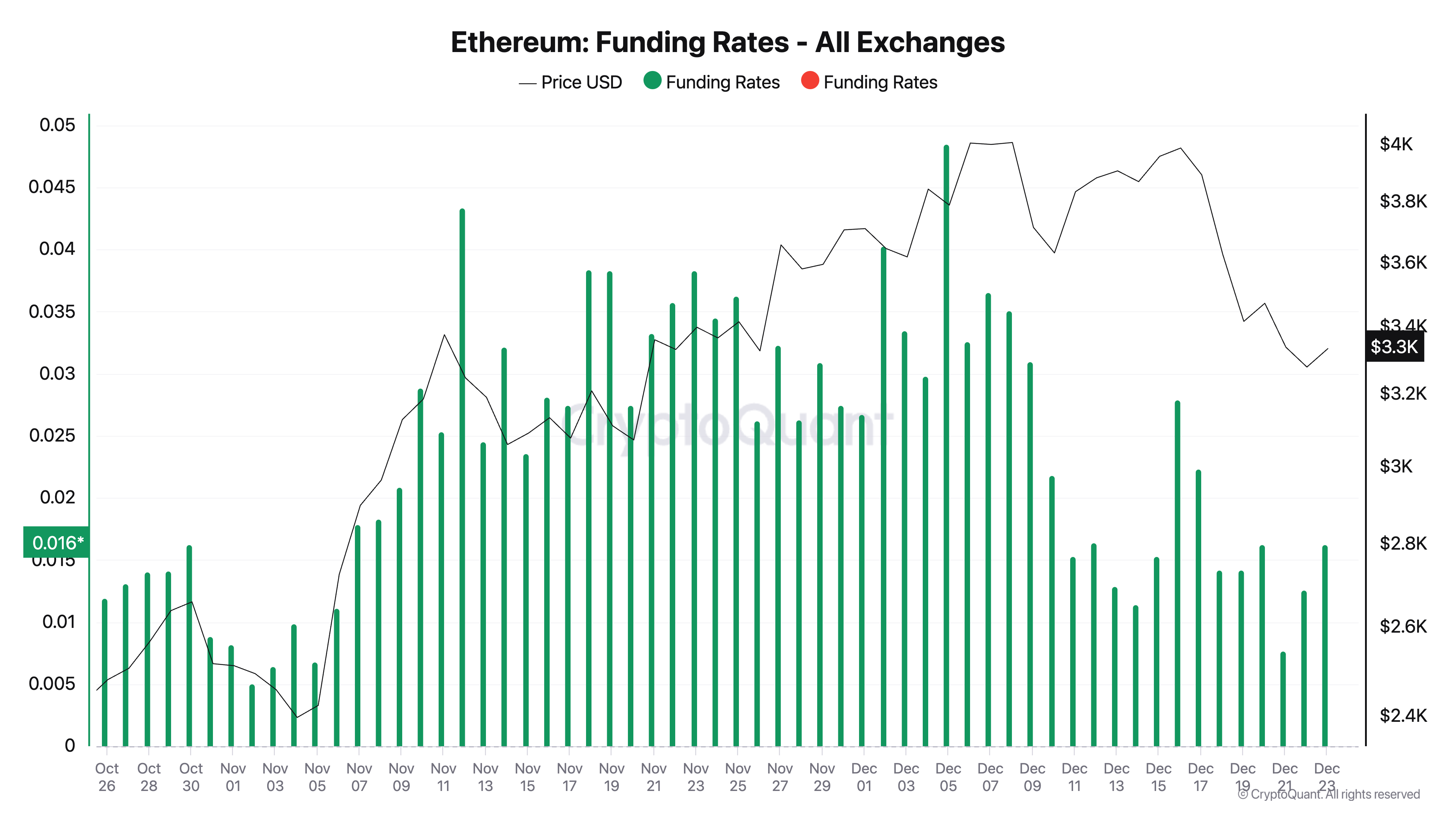 Vidare är ETH:s positiva finansieringsränta ett annat tecken på att priset snart kan återhämta sig. Enligt CryptoQuant ligger den nu på 0,016. Trots den senaste prisnedgången har finansieringsräntan på kryptovalutabörser förblivit positiv, vilket speglar en positiv inställning till ETH.