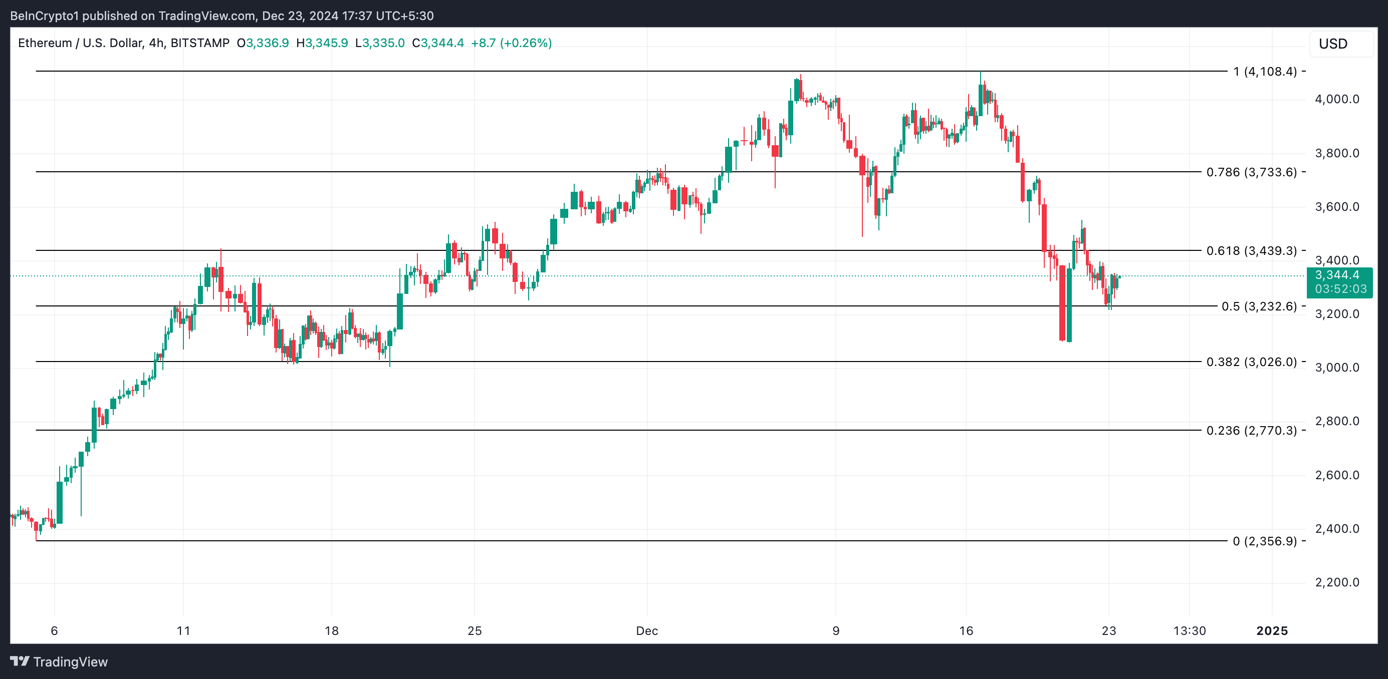 ETH handlas för närvarande till 3 344 USD. Om den positiva inställningen fortsätter och köpaktionen ökar, kan ETH:s pris stiga över motståndet vid 3 439 USD. Ett genombrott på denna nivå kan driva myntet mot 3 733 USD, vilket banar väg för att överstiga den psykologiska gränsen på 4 000 USD.
