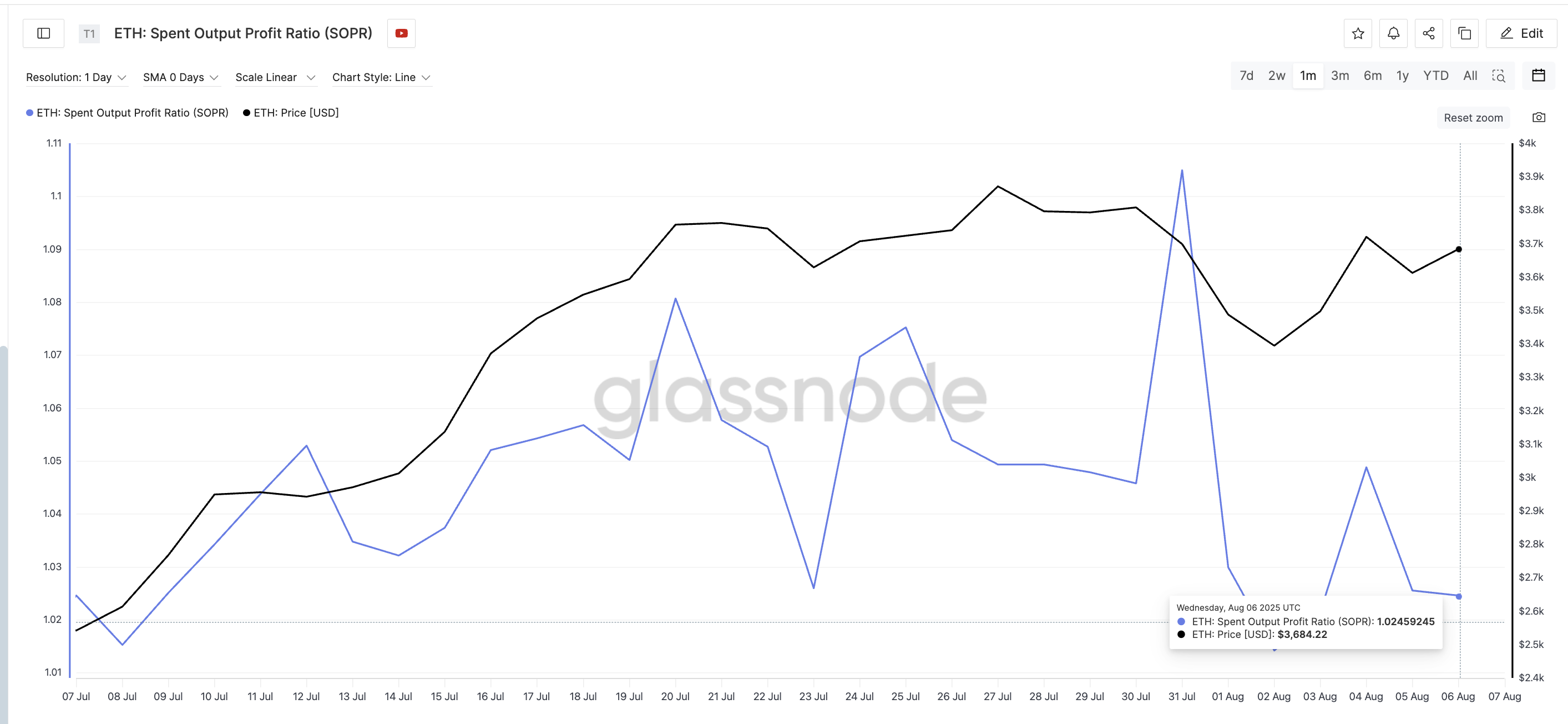 Det är precis vad som händer nu. SOPR har sjunkit, även när Ethereums pris har stigit något. Senast detta hände, i slutet av juli, fick ETH snart momentum. Det är ett typiskt bottenmönster. Om detta beteende fortsätter, stärker det idén att 4 000 USD är inom räckhåll.