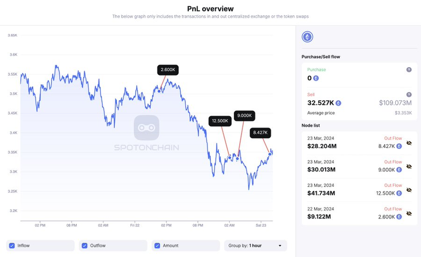 I synnerhet identifierade SpotOnchain tre anmärkningsvärda långsiktiga ETH-handlare som deponerade 32,527 109 ETH värderade till cirka XNUMX miljoner dollar på centraliserade plattformar under de senaste 24 timmarna. Specifikt flyttade dessa handlare 12,500 11,600 8,427, och XNUMX XNUMX ETH till Kraken och Binance.
