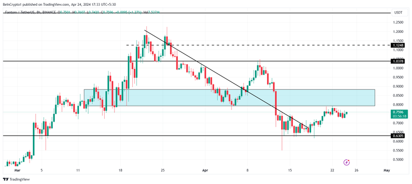 Fantoms pris, som för närvarande handlas till $0,76, är återigen på väg att försöka bryta igenom motståndsblocket som sträcker sig från $0,79 till $0,88. Försöket misslyckades tidigare förra veckan, efter att priset återhämtat sig från en nedgång till $0,63.