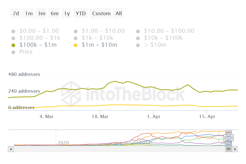 Omvänt noterar Fantom en kraftig ökning av de stora innehavaradresserna i nätverket. Adresserna som innehar mellan 100 000 och 1 miljon dollar i FTM har ökat från 259 till 293. Detta är en ökning med 13.1% under tio dagar, vilket visar att chanserna för altcoins återhämtning blir starkare.