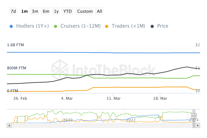 Denna tillströmning av handlare sammanfaller ofta med ökad prisvolatilitet, och priset på FTM speglade faktiskt denna aktivitet och steg från 0,40 USD till 0,81 USD inom samma tidsram. Trenden bland handlarna uppvisade dock en förändring efter den 8 mars. Tillväxten i deras FTM-innehav fortsatte men i en mer måttlig takt.