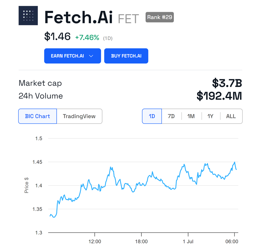 Efter början av fas 1-fusionen har priserna på FET, AGIX och OCEAN stigit med cirka 7%. I skrivande stund handlas FET till $1,46, AGIX till $0,6138 och OCEAN till $0,6105.