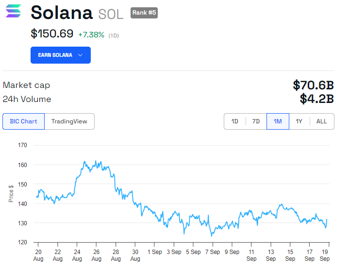 Solanas inhemska token, SOL, har ökat med över 7% sedan fredagssessionen började. Enligt BeInCryptos data handlas den för 150,69 USD i skrivande stund.