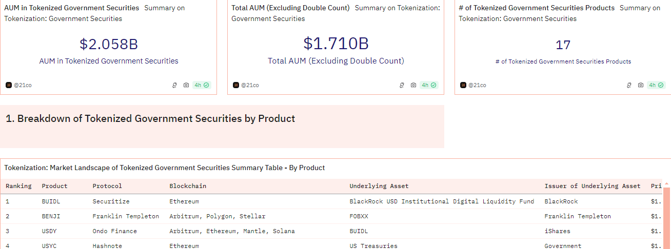 Som visas nedan är BlackRocks BUIDL ledande i utrymmet och står för 25,2% av marknadsandelen. I april gick den om Franklin Templetons fond.