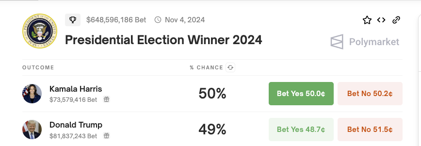 När valet närmar sig, med Harris och Donald Trump sida vid sida på förutsägelsemarknader som Polymarket, står en potentiell utnämning av Gensler som en betydande stridsfråga. Enligt Polymarket är oddsen för att Donald Trump vinner valet 49%, medan Kamala Harris har 50% sannolikhet att bli USA:s president.