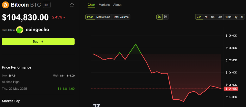 Kryptomarknaderna kraschade och noterade likvidationer på 1 miljard USD efter Israels senaste attack mot Iran. Just nu handlas Bitcoin för 104 830 USD, en minskning med nästan 3 % de senaste 24 timmarna.