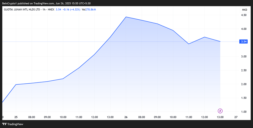 Marknaden reagerade med entusiasm. Guotai Junans aktier steg nästan 470 %. De ökade från 1,24 HKD (0,16 USD) till 7,02 HKD (0,91 USD) under onsdagen. Aktiekursen är 3,54 HKD (0,46 USD) i skrivande stund.