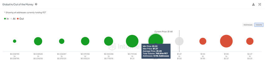 FET-pristillväxten under de senaste dagarna resulterade i en stor ökning av vinsten. Enligt indikatorn Global In/Out of the Money (GIOM) blev cirka 748 miljoner FET värda mer än 1,06 miljarder dollar lönsamma denna vecka.