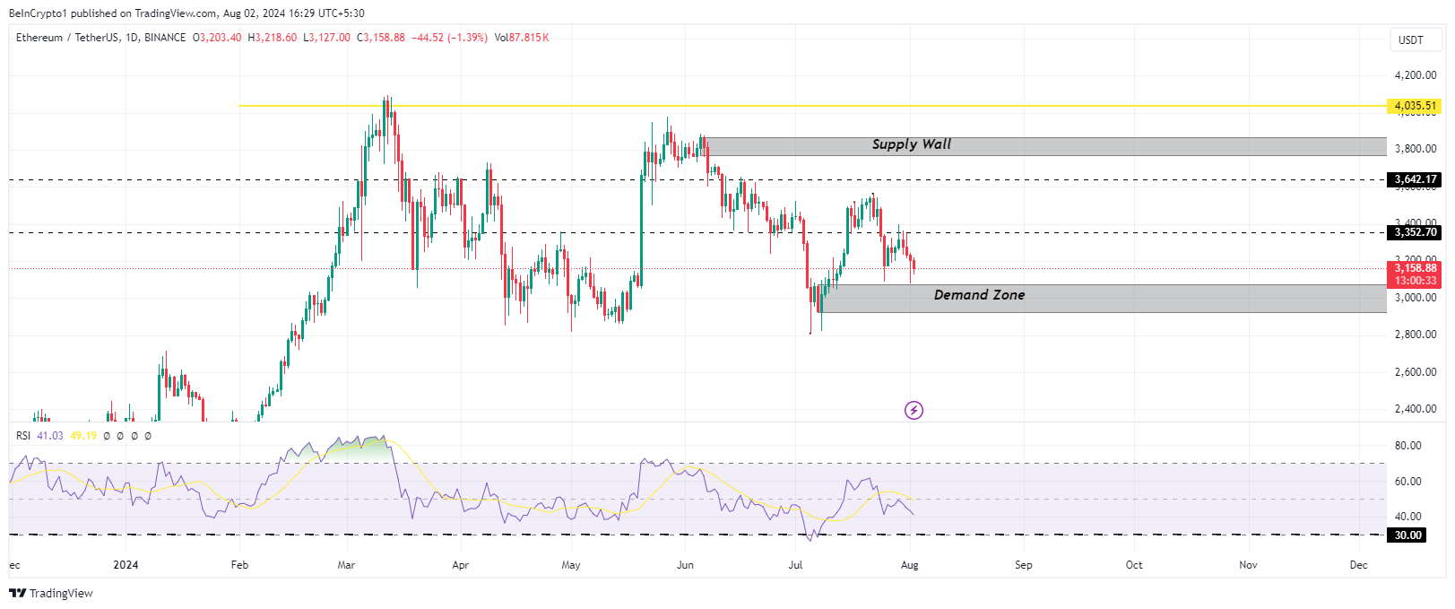 Ethereums pris kan dock sjunka för att ge ytterligare en köpmöjlighet runt tröskeln på 2 800 dollar om efterfrågezonen inte lyckas hålla som ett stödgolv.