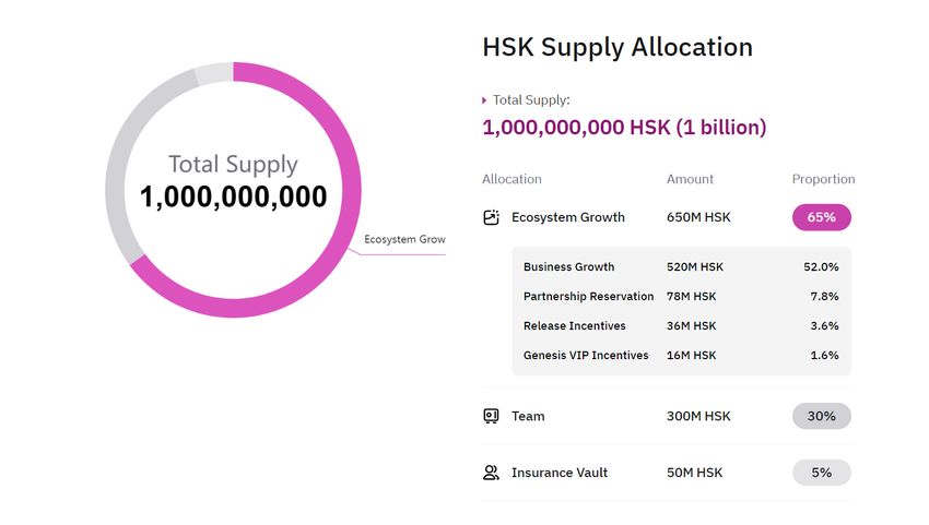 HSK:s tokenomics är strukturerade för att stödja ekosystemets tillväxt, med 65 % avsatta för detta ändamål, 30 % för teamet och 5 % reserverade för framtida behov. Den kommande airdropen i slutet av juni kommer att belöna ekosystembidragsgivare, vilket ger dem en andel i plattformens framtida tillväxt.