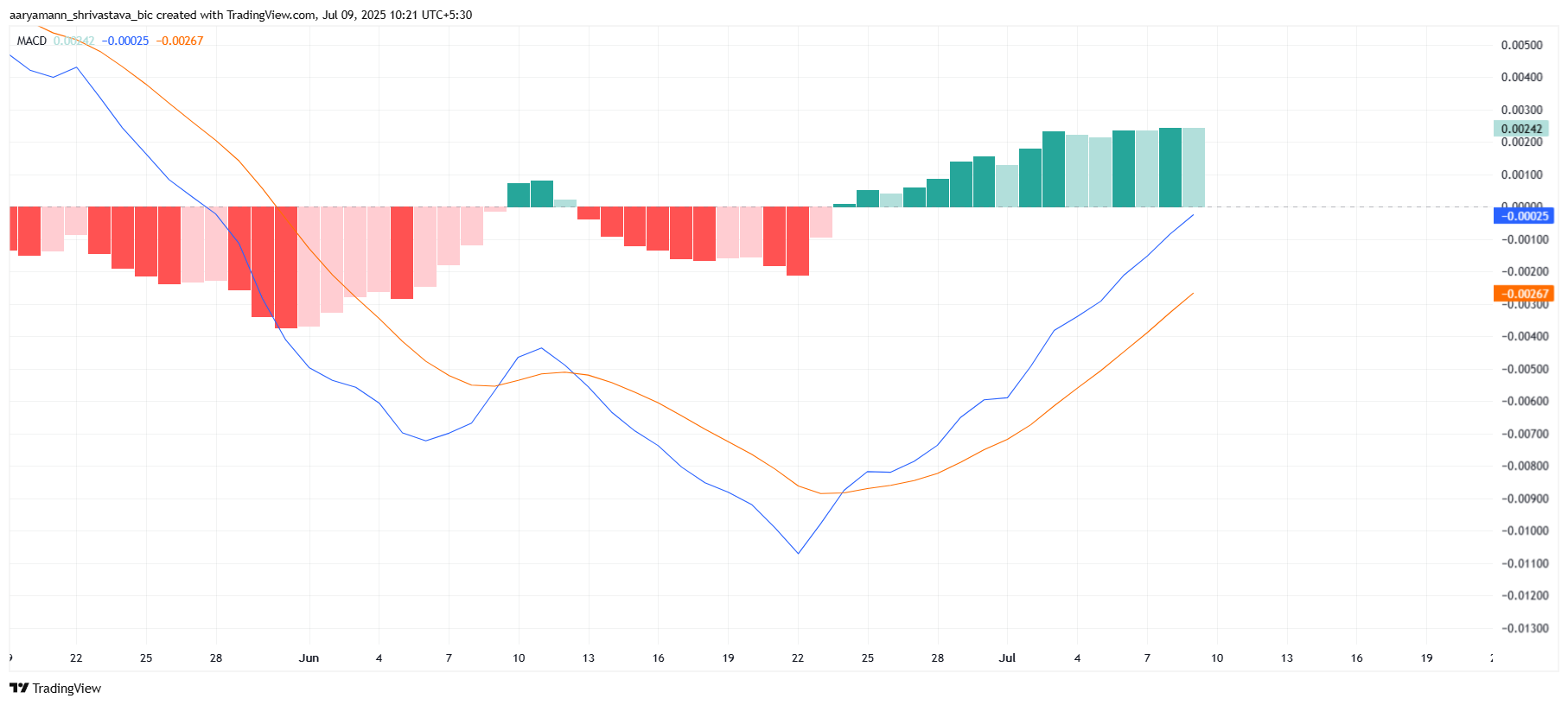 Ser man på den bredare makrotrenden, tyder tekniska indikatorer som Moving Average Convergence Divergence (MACD) på en förskjutning mot positivt sentiment. MACD har visat en fortsatt positiv korsning, vilket vanligtvis signalerar ett ökat köpmomentum.