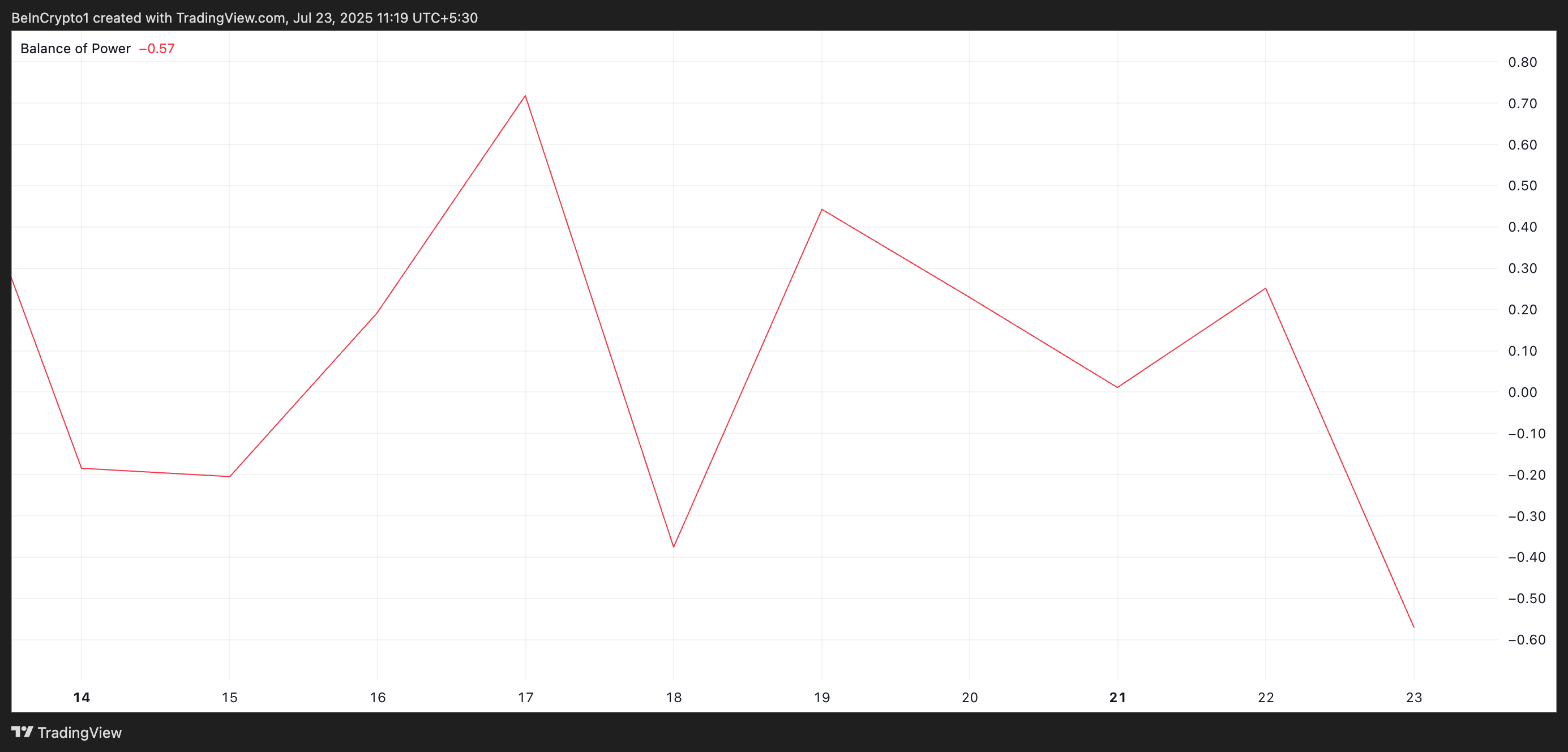 BoP-indikatorn mäter styrkan hos köpare jämfört med säljare på marknaden och hjälper till att identifiera momentumskiften. När dess värde är negativt dominerar säljarna marknaden över köparna och sätter press nedåt på priset.