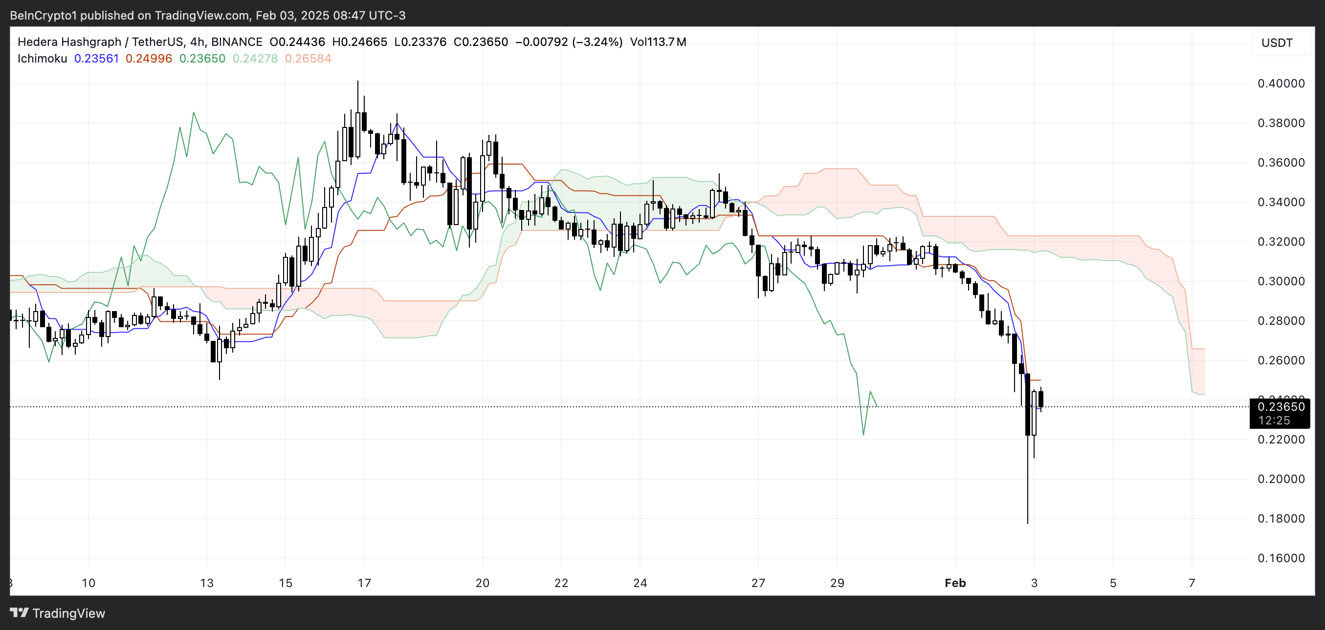 HBAR Ichimoku Cloud visar en baisseartad setup