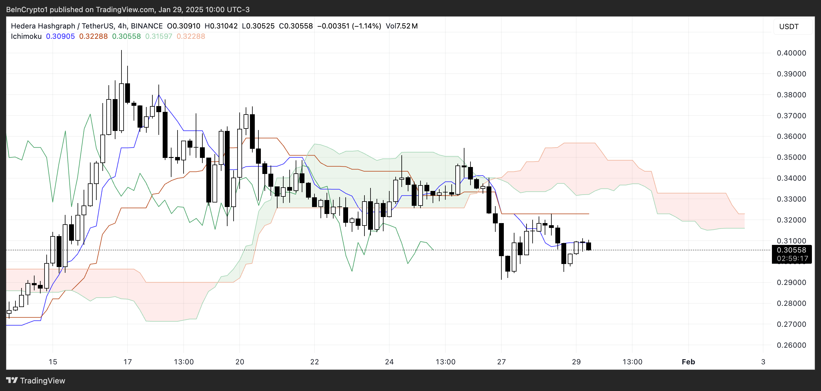 Hedera Ichimoku Cloud visar en baisseinställning